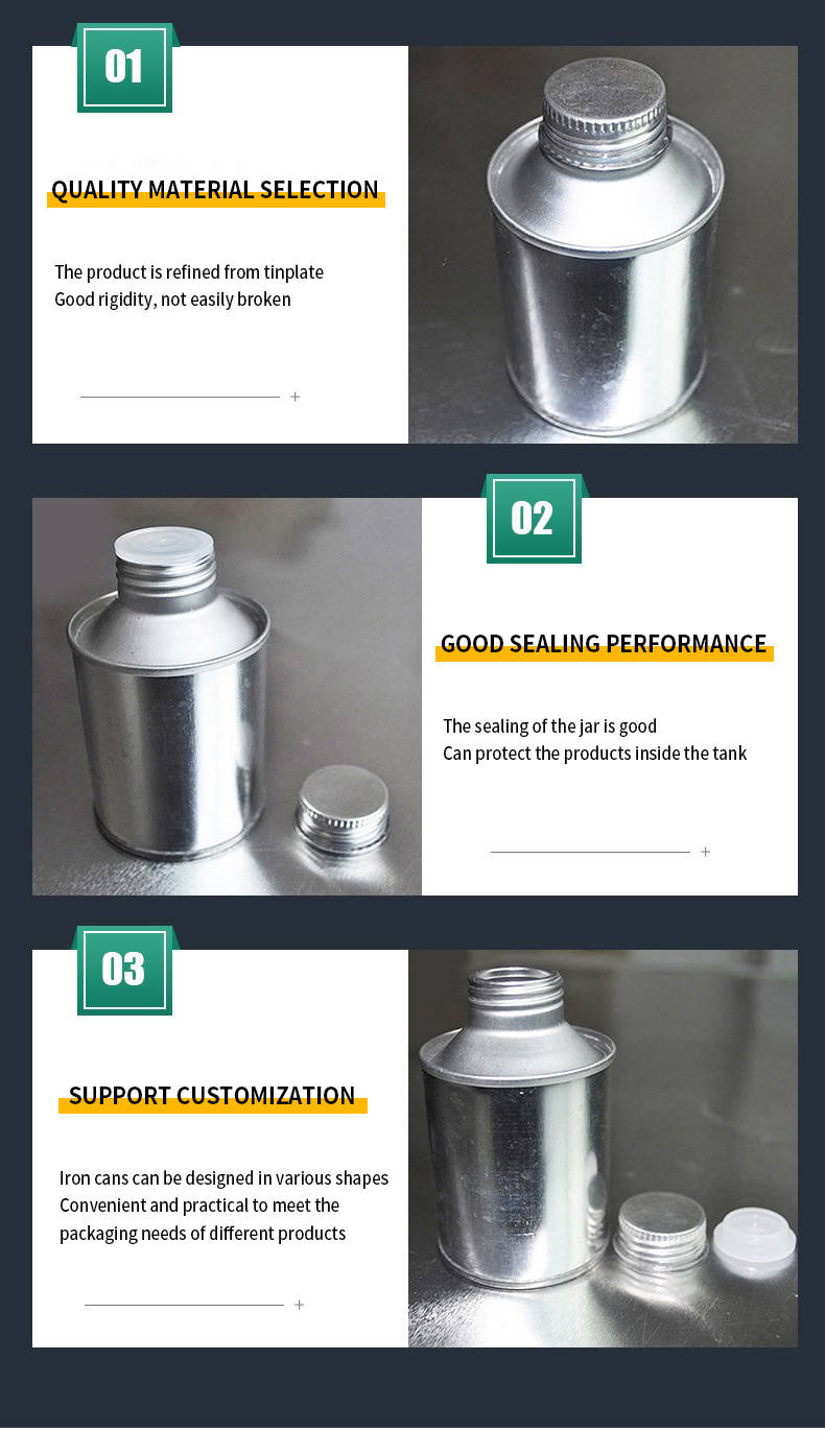 Metal threaded-mouth straight-body round PVC tinplate empty cans for packaging glue tire glue and so on